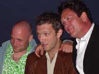 午後6時、先述の弊社配給作品“LIVE FOR EVER”のミニ・パーティに参加。監督ジョン・ダウワー、プロデューサーが来ており、Oasis, Blur, Pulpらのメンバーからインタビューを取るにあたっての苦労話を聞かせてくれた。どうでもいいがこのパーティ、ゲイな方がとても多いのが気になりましたが、何故? コンペ作「Il Cuore Altrove」の夜の正式上映“ソワレ”に、「ブルーベリー」のヤン・クーネン監督、ヴァンサン・カッセル、ジュリエット・ルイス、マイケル・マドセンが出席するということで、赤じゅうたんは大騒ぎ。あまりの人だかりに僕が駆けつけたときには既に時遅し、彼らがメインストリームを上りきった後でした。しかしこのプーピ・アヴァティ監督のイタリア映画の評判は中々よく、フランス映画界からもジャン・ロシュフォール、サンドリーヌ・ボネール、ジェラール・ドパルデュー、レジス・ヴァルニエなどが上映に訪れていた。しかし日本はまだ配給が決まっていない様子。 |